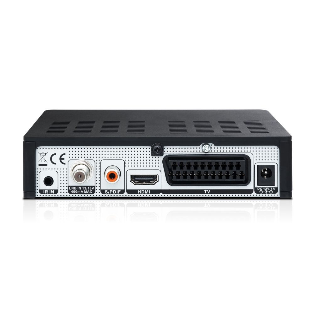 Mira3 Wifi műholdvevő nagy sebességű USB 2.0 csatlakozás támogatása SCART támogatás külső infra port beépített WiFi Időeltolásos (TimeShifting) támogatás Software frissítés USB-n keresztül MKV, AVI, MPG, MP4, TS, VOB, JPEG & MP3 lejátszás Dolby Digital Bit-Stream a HD kimeneten Alacsony áramfelvételTovábbi taljdonságok Timeshift támogatás Csatornafelvétel és Timeshifting egyidejűleg (opcionális) Csatornaváltási idő kevesebb, mint 1 másodperc Színhű, felhasználóbarát képernyőn megjelenő kijelző (OSD) Teljes kép a grafikában (PIG) funkció Elektronikus programajánló (EPG) a képernyőn megjelenő csatornainformációkhoz Támogatott feliratozás Teletext támogatás VBI beillesztéssel és szoftveres emulációval Szülői zár lehetőség csatornánként és programeseményenként Program- és csatornainformációk átvitele vevőkészülékről vevőkészülékre Többnyelvű támogatás Energiafogyasztás készenléti állapotban: <0.5WTuner és demoduláció DVB-S / DVB-S2 Bemeneti csatlakozó: F-típusú csatlakozó, aljzat Jelszint: -65 és -25 dBm között LNB teljesítmény és polarizáció: Függőleges: +13V/+14V, Vízszintes: +18V/+19V Áramerősség: Max. 400mA Túlterhelés elleni védelem 22KHz hangfrekvencia: 22±1KHz DiSEqC vezérlés: 1.0, 1.1, 1.2, USALS: 1.0, 1.1, 1.2, USALS verzió Demoduláció: QPSK, 8PSK Bemeneti jelsebesség: 2-45 Mbps, FEC: 1/2, 2/3, 3/4, 5/6, 7/8 és AutoRendszer erőforrások Fő processzor: Kétmagos 650MHz Flash memória: 64MBit DDR RAM: 1024 MBit MPEG TS A/V dekódolás Szállítási folyam: MPEG-2, H.264 Bemeneti sebesség: Mbit/s sebesség: max. 120Mbit/s Aspect Rádió: 4:3, 16:9, Letter Box Videó dekódolás: MPEG-2, MP@ML, MPEG-4 rész 10/H264 720*480P/I, 720*576P/I, 1280*720p, 1920*1080i, 1920*1080p Audió dekódolás: MPEG-1 réteg I/II, MPEG-2 réteg II, Dolby digital Audió üzemmód: Bal / Jobb / Sztereó / Mono Mintavételezési sebesség: 32, 44.1 és 48KHzTápegység Bemeneti feszültség: 12V DC 18W Max. Készenléti energiafogyasztás: <0.5WA/V és adat bemenet/kimenet SCART: CVBS videó kimenet / Audio L/R kimenet USB: USB 2.0 csatlakozóhely S/PDIF: Koaxiális HDMI: VER1.4, A típus IR-port: Belső és jack típusúFizikai specifikációk Méret: 144mm*40mm*110mm Nettó súly: 0.25KG Működési hőmérséklet: HŐMÉRSÉKLET: 0°C ~ +45°C Tárolási hőmérséklet: -10°C~+70°C Tárolási páratartalom: 5%~95% RH (nem kondenzáló)