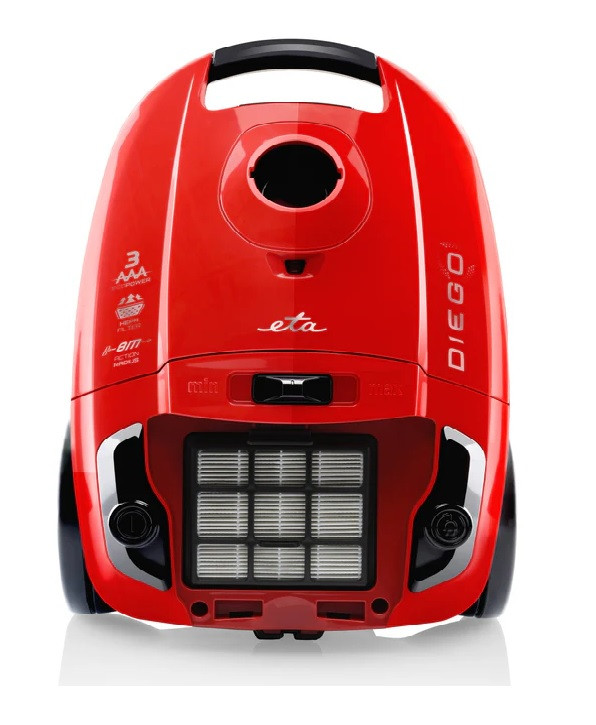 Az ETA Diego porzsákos porszívó biztosan lenyűgözi már első látásra a gyönyörű, piros kialakításával. Legnagyobb erősségeit azonban nem külsejében tartogatja. Az ETA Diego energiatakarékos ECO motorral rendelkezik (800 W teljesítmény), amely nemcsak a környezetet, hanem a pénztárcáját is kíméli. A nagy szívóerő azonban megmarad, így nem kell kompromisszumot kötnie a teljesítmény és a megtakarítás között. Minőségi szűrés A bemeneti mikroszűrő védi a motort a szennyeződéstől, és így meghosszabbítja annak élettartamát. A kiváló minőségű HEPA szűrőknek köszönhetően garantált, hogy a por nem kerül vissza a levegőbe, és még a legkisebb mikrorészecskéket is felfogja, beleértve a pollent és az atkákat. Az ETA Original 3 l űrtartalmú porzsák ellenáll a nedvességnek és az ellenálló anyagból történő kialakítás miatt az éles szennyeződések sem tesznek kárt benne. Az elektronikus vezérlésnek köszönhetően a szívóteljesítményt pontosan az igényeinek megfelelően állíthatja be. Kemény padlón és parkettán alacsonyabb teljesítménnyel is tökéletesen működik, a szőnyegen pedig kipróbálhatja a porszívó teljes teljesítményét. A porszívó a megtelt porzsák esetén figyelmeztet, és hiányzó porzsáknál beépített biztonsági biztosíték nem teszi lehetővé a porzsák nélküli porszívózást. Az ergonomikus kialakítású fogantyúnak és a másodlagos légbeszívás integrált szabályozásának köszönhetően a porszívó kezelése nagyon kényelmes. Az alacsony zajszint mellett, mely mindössze 73 dB(A) nem lesz kellemetlen a takarítás. A porszívózás az ETA Diego segítségével egyszerűen gyerekjáték! A 360 °-ban elforgatható kerekek minden irányban lehetővé teszik a mozgást, és légy bevonatuknak köszönhetően pedig gyengédek a sima padlókhoz, például fa-, hajó-, vinil- vagy PVC -padlóhoz. Ezenkívül a 8 m hatósugár kényelmes kezelést tesz lehetővé a tápkábel újbóli csatlakoztatása nélkül. A kábel hossza 5 m. Padlótól a mennyezetig Az ETA Diego porszívó tartozékai a tisztaság szerelmeseinek is csábítóak lesznek. Az univerzális padlószívófej a szőnyegek és a kemény padlók porszívózásához használható. A kicsi turbókefe, amelyet kárpitok porszívózására terveztek, hatékonyan gyűjti össze a hajat és az állati szőrzetet. A parketta szívófej a kemény padlóhoz (pl. Parketta, hajópadló, csempe, linóleum) nyújt segítséget, míg a résszívófej-alkalmas keskeny és nehezen elérhető helyek porszívózására (pl. Radiátor bordákban, bútorok mögött stb.). A finom sörtéjű kefe segít tisztítani olyan helyeket, ahol óvatosan kell eltávolítani a port vagy a pókhálót (bútorok, falak vagy festmények). Emellett a fém teleszkópos cső ideális magasságbeállítást tesz lehetővé a felhasználó számára. A tartozékok csatlakozási átmérője 35 mm. A szívótömlő nyílása a porszívó tetején található a kényelmes felszerelés és eltávolítás érdekében. A porszívó a készülék tetején fújja ki a levegőt, így csökkenti a takarítás közben a por felkavarását. A porszívót függőleges vagy vízszintes helyzetben tárolhatja. A praktikus fogantyú pedig szuper segítség a hordozásban. Típus: Porzsákos porszívó Tisztítás típusa: Száraz Portároló típusa: Porzsák Szűrőrendszer: HEPA Energia ellátás: Hálózati Alap szín: Piros Egyéb szín: Fekete Teljesítmény: 800 W Állítható teljesítmény: Igen Zajszint: 73 dB Egyéb funkciók: Automatikus vezetékfelcsévélő: Igen Hatótávolság (max.): 8 m Réstisztító eszköz: Igen Kábel hosszúság: 500 cm Porzsák: 3 literes kapacitás Fizikai jellemzők Nettó súly: 6,5 kg Szélesség (max.): 430 mm Magasság (max.): 240 mm Mélység (max.): 300 mm